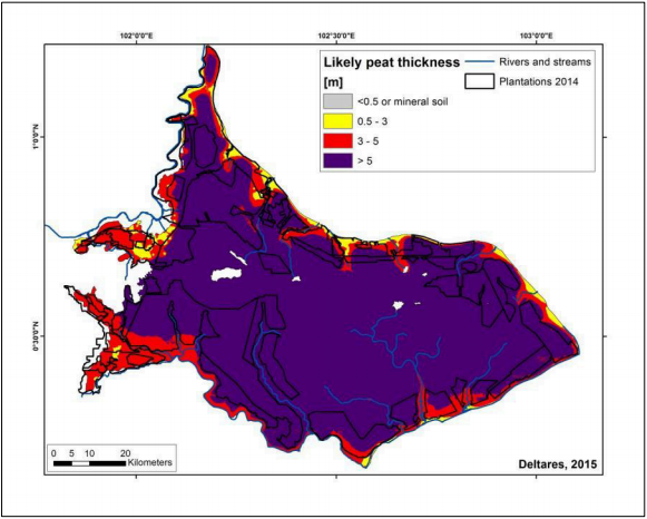 Deltares, konsultan Belanda, menyusun laporan dengan sampel lapangan, citra LiDAR, dan model elevasi. Kajian menyimpulkan lahan perkebunan Kampar akan tenggelam di bawah banjir dan akhirnya terbengkalai. Pengeringan gambut menyebabkan runtuh dan membusuk, melepaskan karbon besar ke atmosfer serta meningkatkan risiko kebakaran tak terkendali.